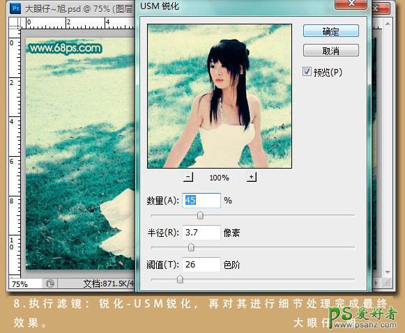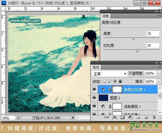 photoshop给草地上漂亮的美女婚纱照调出浪漫的黄青色