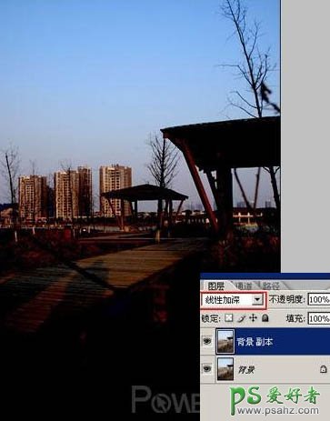 1、打开文件,复制背景图层,把图层模式改为线性加深。