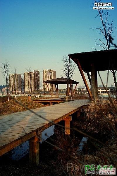 PS照片后期调色教程,photoshop调出时尚流行的青黄色公园风景图片,本教程介绍风景图片的快速美化方法。大致过程:先把图片的色彩层次加强,如天空部分稍微加深,局部可以按照需要加上暗角等。然后用通道选区来整体润色即可。