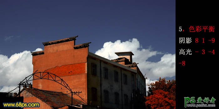 PS调色教程:给村庄里的建筑物图片调出强对比的暗调橙蓝色