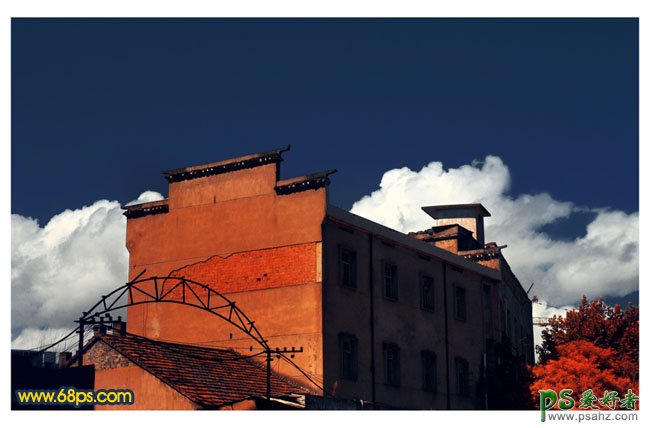 PS照片后期调色实例教程,PS调色教程:给村庄里的建筑物图片调出强对比的暗调橙蓝色,橙蓝色是组高雅的色调。冷暖对比有利于加强图片的层次。如果搭配适当的话,如把主体调成橙黄色,背景等调成深蓝色,可以很好的突出主体部分。