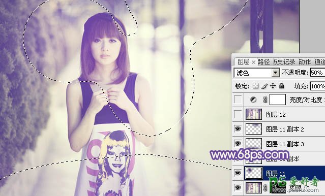 13、新建一个图层,混合模式改为“滤色”,把前景颜色设置为:#440971,用画笔把图19选区部分涂上高光,效果如图20。