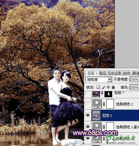 8、按Ctrl + Alt + ~ 调出高光选区,按Ctrl + Shift + I 反选,新建一个图层填充颜色:#100957,混合模式改为“饱和度”,效果如下图。