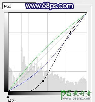 10、创建曲线调整图层,对RGB,绿,蓝进行调整,参数设置如图17,效果如图18。