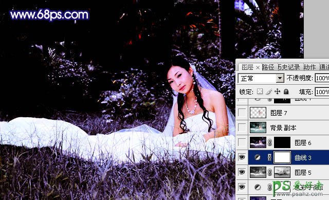 photoshop给热恋情侣婚纱图片调出柔美的蓝灰色