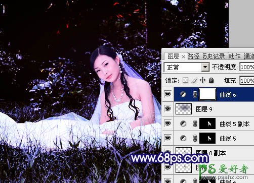 今天我们来学习一篇PS婚片后期调色教程实例,PS快速调出暗蓝色MM个性婚片效果教程,本教程介绍暗调图片调色方法。过程也比较简单,先设好主色,然后用图层叠加或调色工具把图片整体色调压暗。后期再修复一下肤色及细节等即可。 最终效果 原图 1、