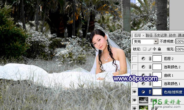 photoshop给热恋情侣婚纱图片调出柔美的蓝灰色