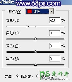 3、创建可选颜色调整图层,对红,黄进行调整,参数设置如图4,5,效果如图6。