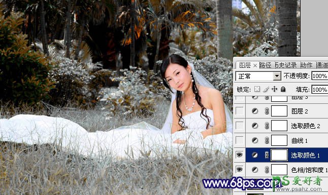 photoshop给热恋情侣婚纱图片调出柔美的蓝灰色