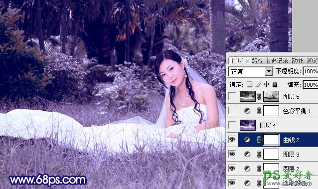 PS快速调出暗蓝色MM个性婚片效果教程