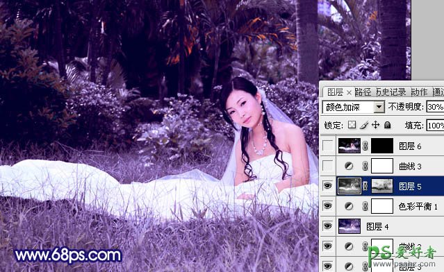 9、新建一个图层,按Ctrl + Alt + Shift + E 盖印图层,然后按Ctrl + Shift + U去色。再按Ctrl + Alt + ~ 调出高光选区,按Delete 删除,确定后把图层混合模式改为“颜色加深”,不透明度改为:30%,效果如下图。