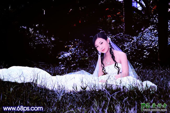 今天我们来学习一篇PS婚片后期调色教程实例,PS快速调出暗蓝色MM个性婚片效果教程,本教程介绍暗调图片调色方法。过程也比较简单,先设好主色,然后用图层叠加或调色工具把图片整体色调压暗。后期再修复一下肤色及细节等即可。