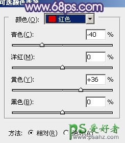 2、创建可选颜色调整图层,对红色进行调整,参数设置如图3,效果如图4。