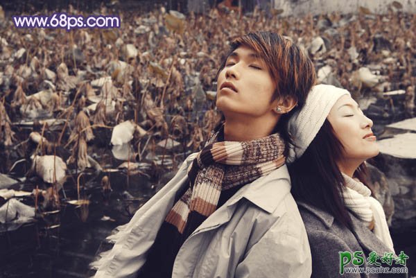 photoshop给热恋情侣婚纱图片调出柔美的蓝灰色