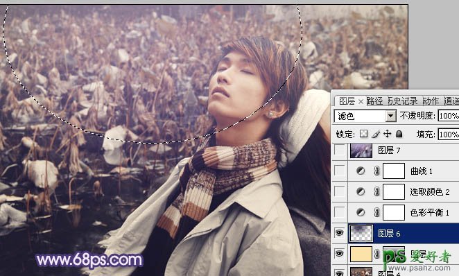 8、新建一个图层,混合模式改为“滤色”,把前景颜色设置为:#2F2052,用画笔把下图选区部分涂上高光。