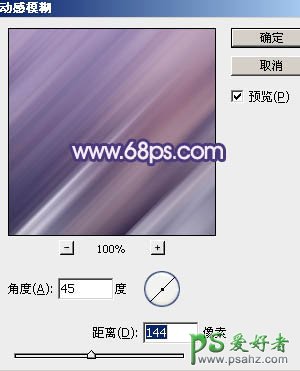 12、新建一个图层,按Ctrl + Alt + Shift + E 盖印图层。执行:滤镜 > 模糊 > 动感模糊,参数设置如图21,确定后把图层混合模式改为“柔光”,不透明度改为:50%,效果如图22。
