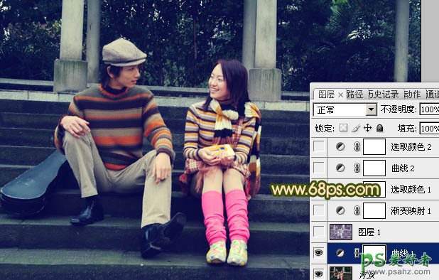 photoshop给热恋情侣婚纱图片调出柔美的蓝灰色