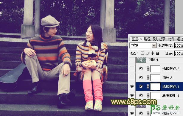 photoshop给热恋情侣婚纱图片调出柔美的蓝灰色