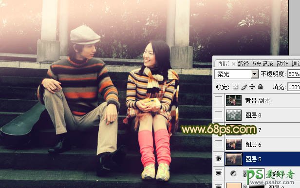 10、新建一个图层,按Ctrl + Alt + Shift + E 盖印图层。执行:滤镜 > 模糊 > 动感模糊,数值自定。确定后把图层混合模式改为“柔光”,不透明度改为:50%,如下图。