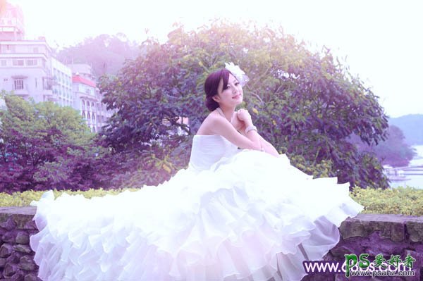 photoshop给漂亮的婚片少女图片调出美美的紫绿色