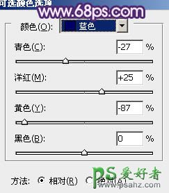 11、选择菜单:图像 > 模式 > RGB颜色,选择不合拼。确定后创建可选颜色调整图层,对黄,蓝,洋红进行调整,参数设置如图21 - 23,效果如图24。