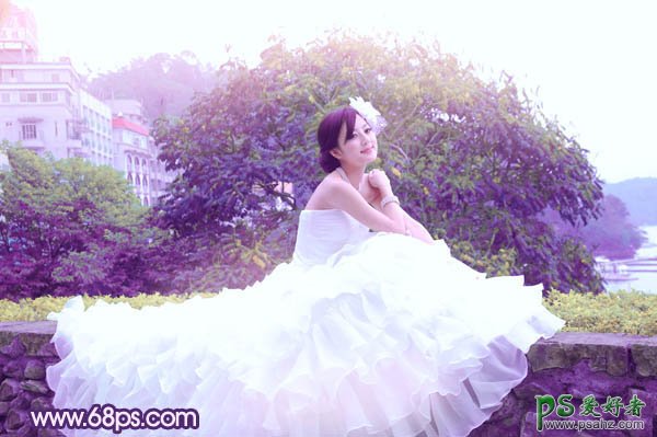 photoshop给漂亮的婚片少女图片调出美美的紫绿色