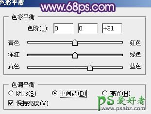 2、创建色彩平衡调整图层,对中间调及高光进行调整,参数设置如图4,5,效果如图6。