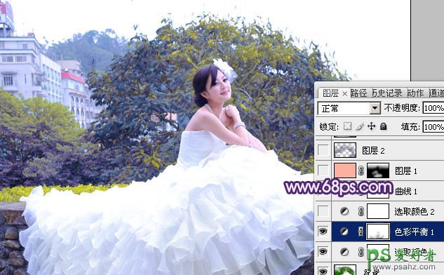 PS影楼后期调色教程:给甜美少女婚片写真照调出暖色效果