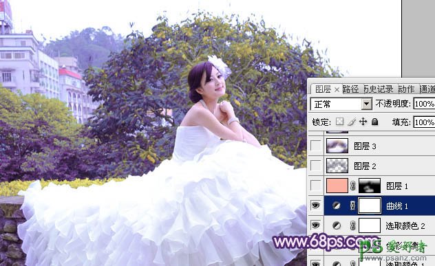 photoshop给漂亮的婚片少女图片调出美美的紫绿色