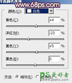 5、创建可选颜色调整图层,对红,黄,白进行调整,参数设置如图7 - 9,效果如图10。