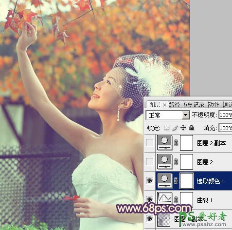 photoshop给漂亮的婚片少女图片调出美美的紫绿色
