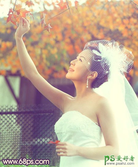 今天我们来教大家学习影楼里婚片后期调色实例教程,PS影楼后期调色教程:给甜美少女婚片写真照调出暖色效果,素材图片有点偏红,虽然有点朝霞的颜色,不过还不是很明显。处理的时候可以适当把红色转为橙色,然后再把整体调亮,局部加上蓝色等补色即可。