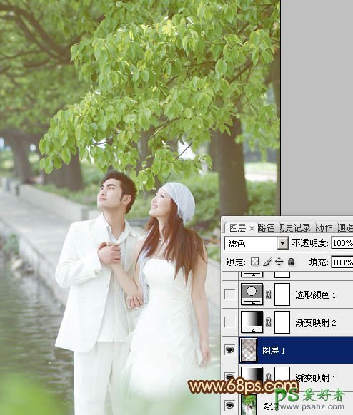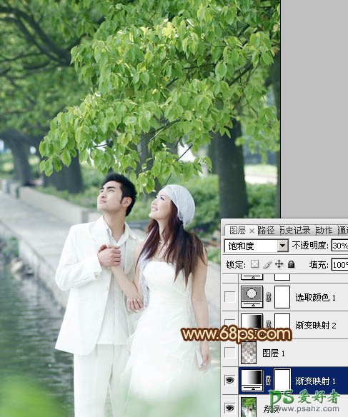 1、打开原图素材,创建渐变映射调整图层,颜色设置如图1,确定后把图层混合模式改为“饱和度”,不透明度改为:30%,效果如图2。