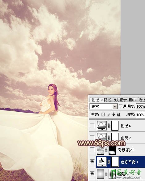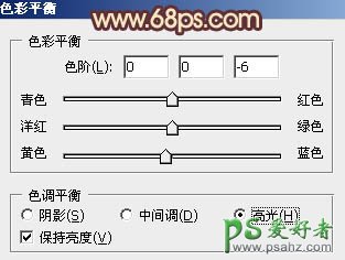 10、创建色彩平衡调整图层,对高光进行调整,参数设置如图18,效果如图19。