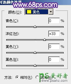4、创建可选颜色调整图层,对红,黄进行调整,参数设置如图5,6,效果如图7。