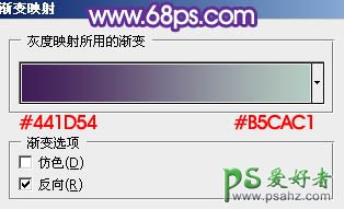 5、创建渐变映射调整图层,颜色设置如图8,确定后把图层混合模式改为“叠加”,不透明度改为:30%,效果如图9。