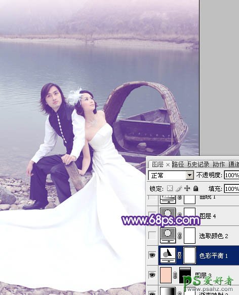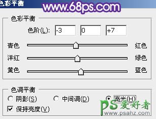 7、创建色彩平衡调整图层,对高光进行调整,参数设置如图11,喜爱哦过如图12。