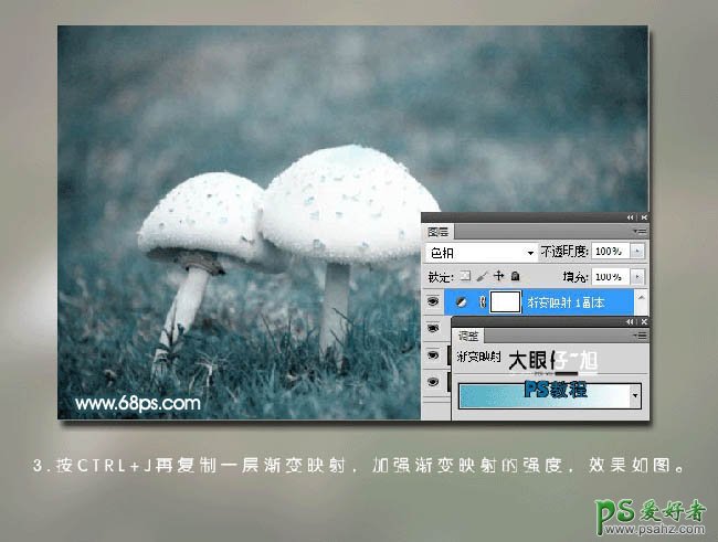 PS调色教程:给一对漂亮的小蘑菇图片调出伤感的青色调