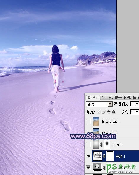 photoshop给一幅沙滩上美女走光图调出漂亮的淡蓝色