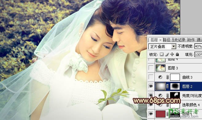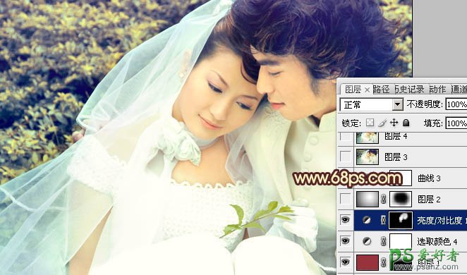 photoshop给一对爱人婚纱照调出黄绿蜜糖色