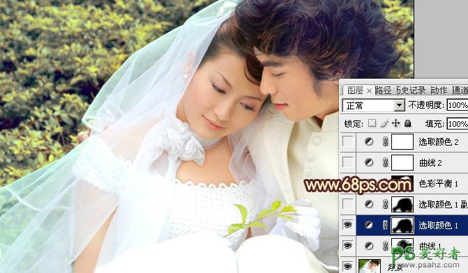 photoshop给一对爱人婚纱照调出黄绿蜜糖色