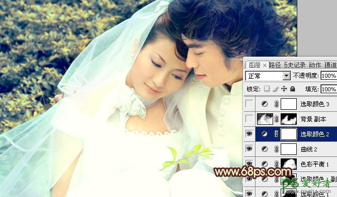 photoshop给一对爱人婚纱照调出黄绿蜜糖色