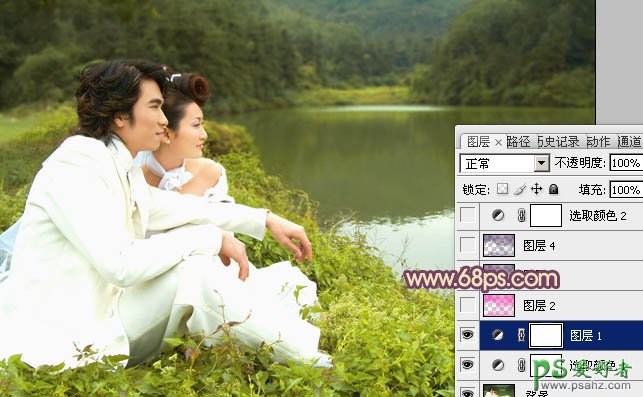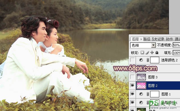 3、按Ctrl + Alt + ~ 调出高光选区,按Ctrl + Shift + I 反选,这样我们就得到暗调部分的选区。新建一个图层填充紫色:#F904C2,混合模式改为“色相”,不透明度改为:50%,效果如下图。这一步是给暗调部分加上淡淡的补色。