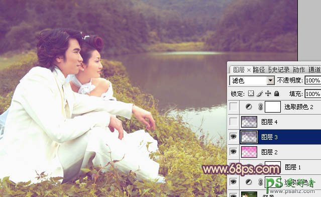 4、按Ctrl + Alt + ~ 调出高光选区,按Ctrl + Shift + I 反选,新建一个图层填充暗紫色:#552469,混合模式改为“滤色”,效果如下图。这一步是加强补色。