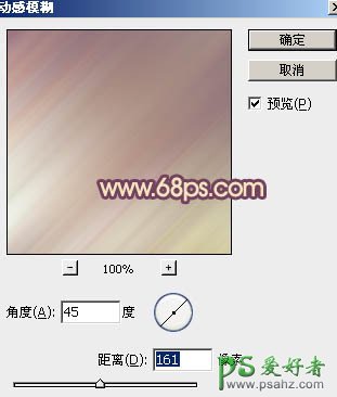 11、新建一个图层,按Ctrl + Alt + Shift + E 盖印图层。执行:滤镜 > 模糊 > 动感模糊,参数设置如图18,确定后把图层混合模式改为“柔光”,不透明度改为:20%,效果如图19。这一步是给图片柔化处理。
