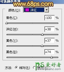 4、创建可选颜色调整图层,对黄,洋红进行调整,参数设置如图7,8,效果如图8。