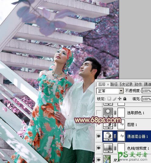 photoshop调出淡橙色效果外景情侣婚片写真照
