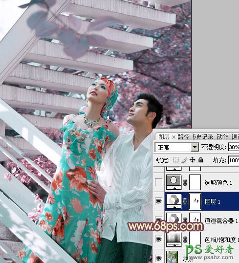 3、按Ctrl + J 把当前通道混合器调整图层复制一层,不透明度改为:30%,效果如下图。