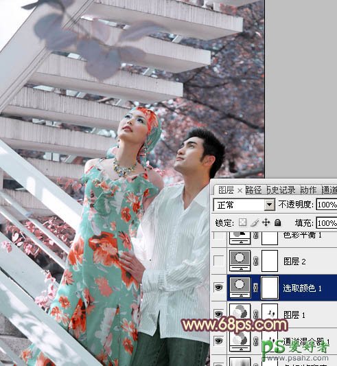 photoshop调出淡橙色效果外景情侣婚片写真照