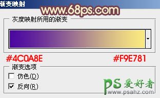 7、创建渐变映射调整图层,颜色设置如图13,确定后把图层混合模式改为“强光”,不透明度改为:20%,确定后用黑色画笔把人物衣服部分擦出来,效果如图14。